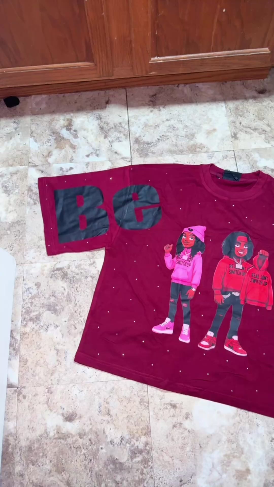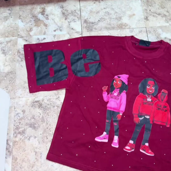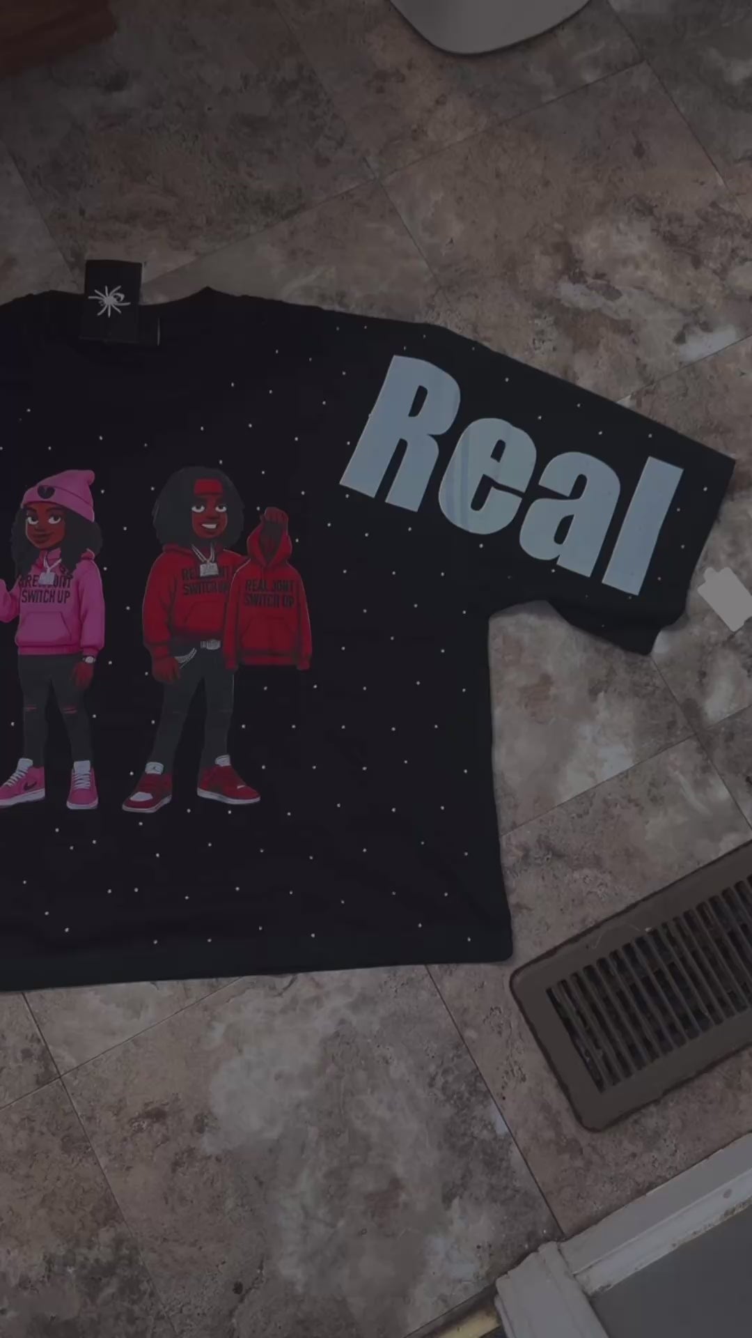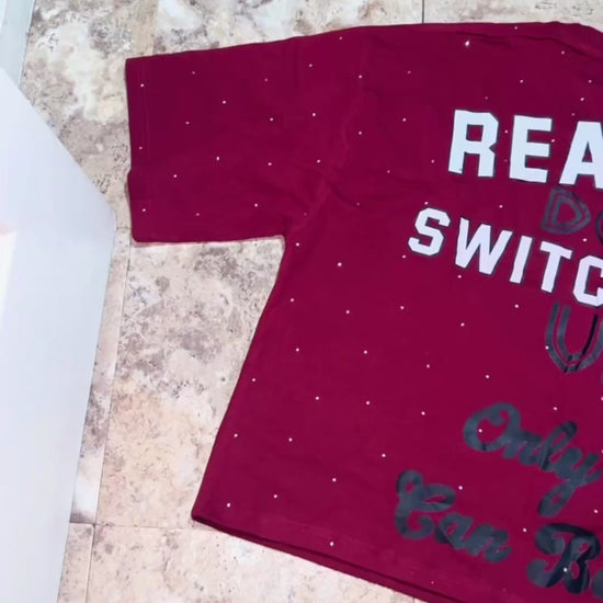 Black Cropped shirts With rhinestones all over. Real Dont Switch Up on the back with a catchy quote “Only You Can Be Real”