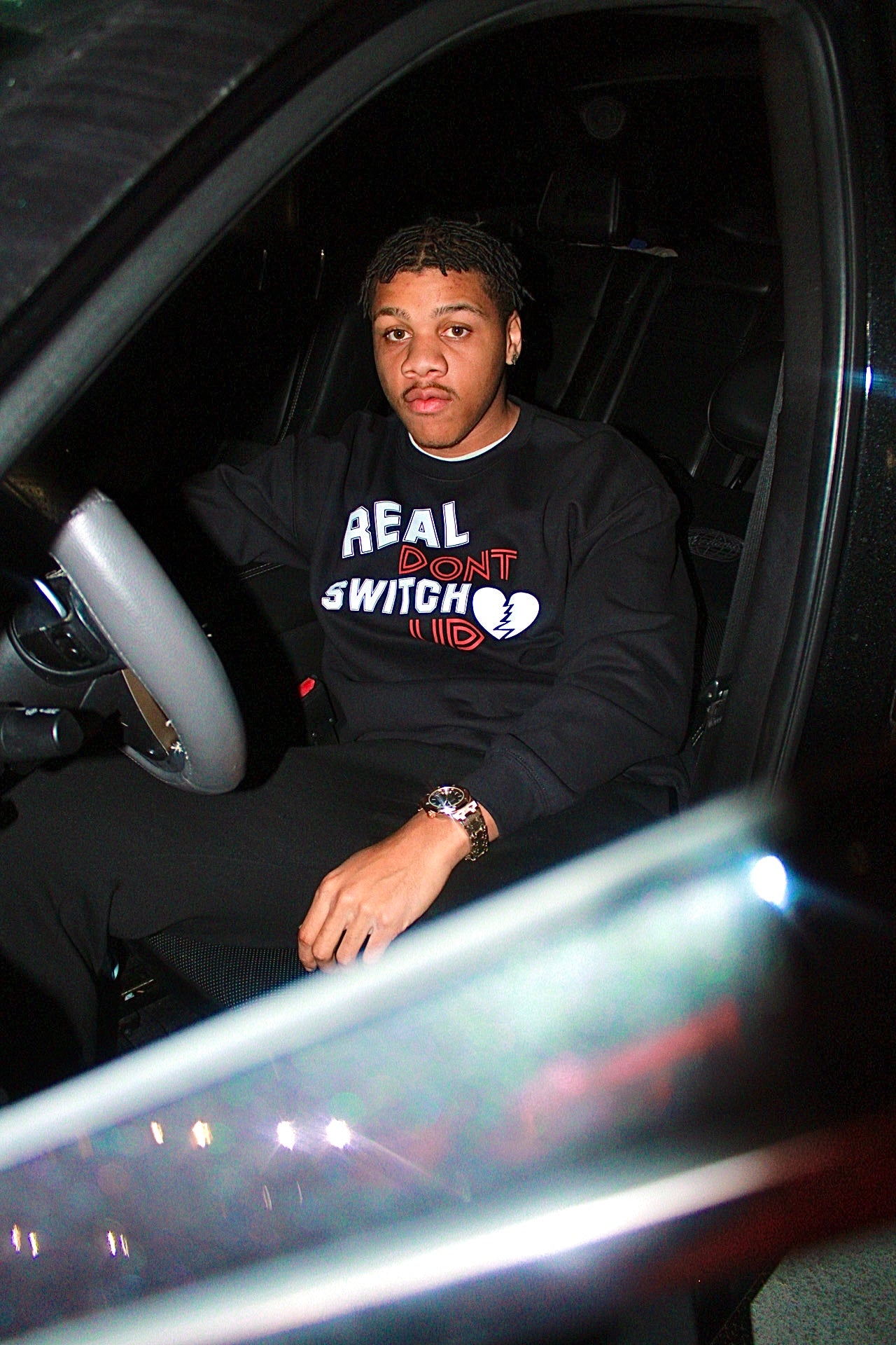 Real Dont Switch Up Sweater with a broken heart on the back Red and White